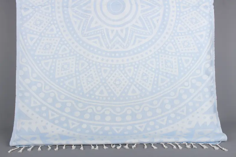 Round Pattern Towel Light Blue Organic Cotton, 40x71 Inches