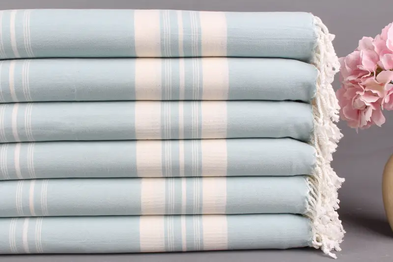 Organic Beach Towel Handmade Turkish Cotton Mint Beige Stripes, 38x60 Inches