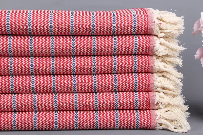 Monogram Beach Towel, Turkish Bath Towel, Red-Navy Blue, 40x71 Inches
