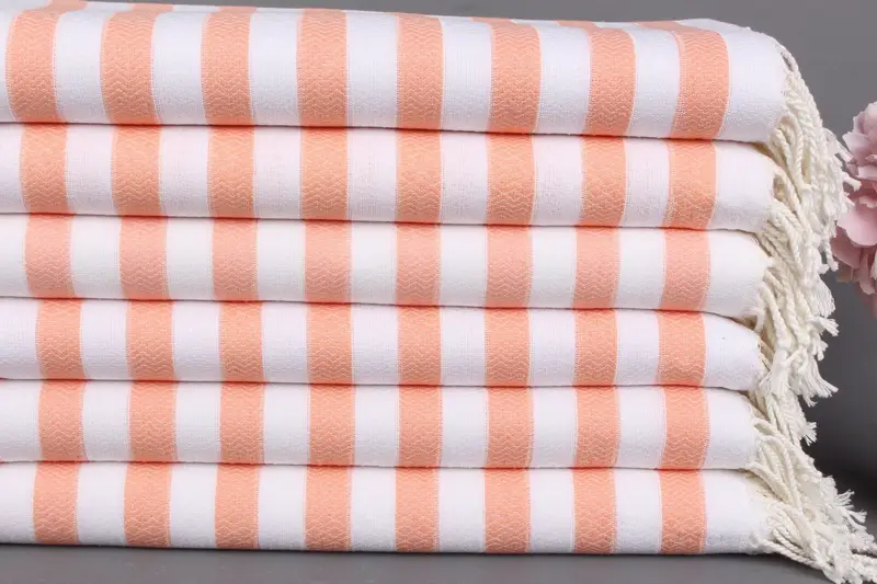 Organic Cotton Beach Towel Striped Beige, 36x71 Inches