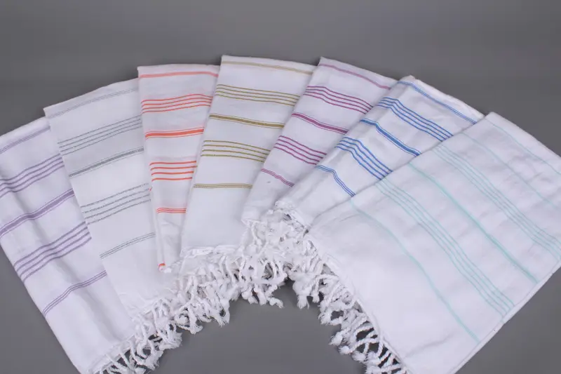 Beach Towel Handmade Organic Cotton Striped Beige, 40x71 Inches