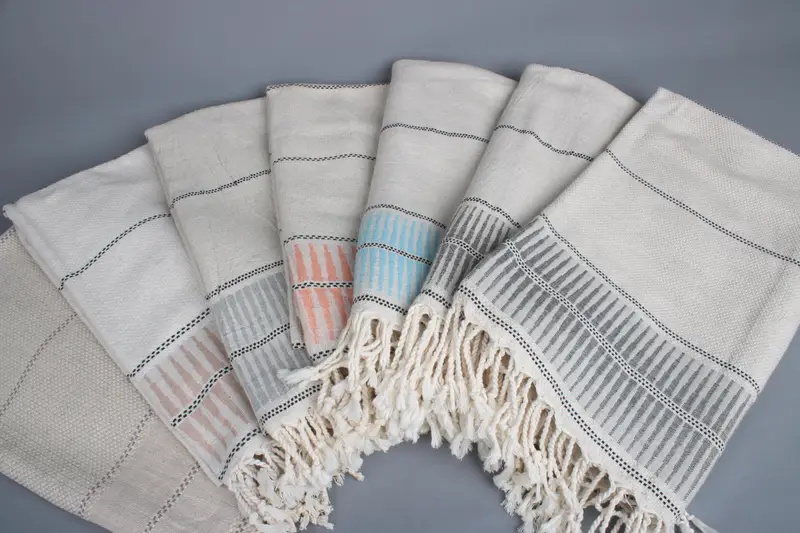Handmade Turkish Beach Towel Striped Beige Linen, 71x40 Inches