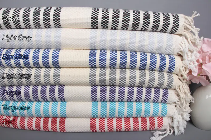 Beach Towel Monogrammed Turkish Organic Cotton Beige Stripes, 70x40 Inches