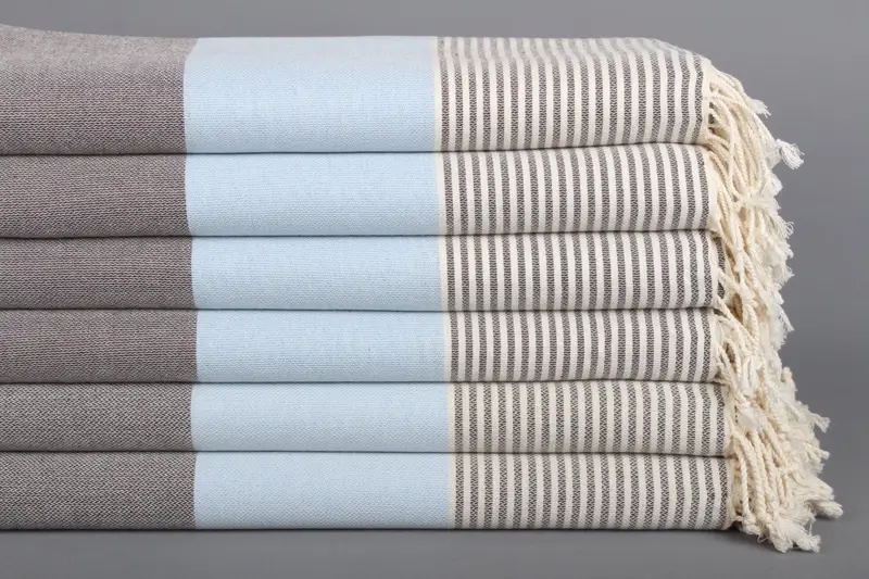 Beach Towel Turkish Cotton Baby Blue-Brown Stripes, 40x67 Inches