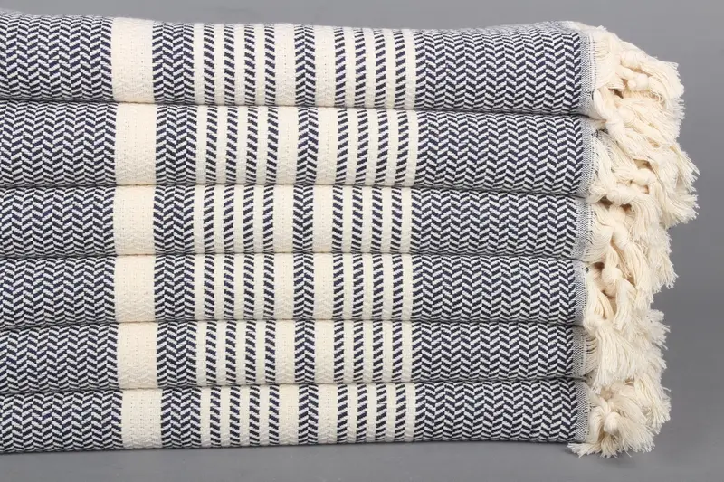 Turkish Towel Navy Cotton Striped Beach Towel, 40x71 Inches
