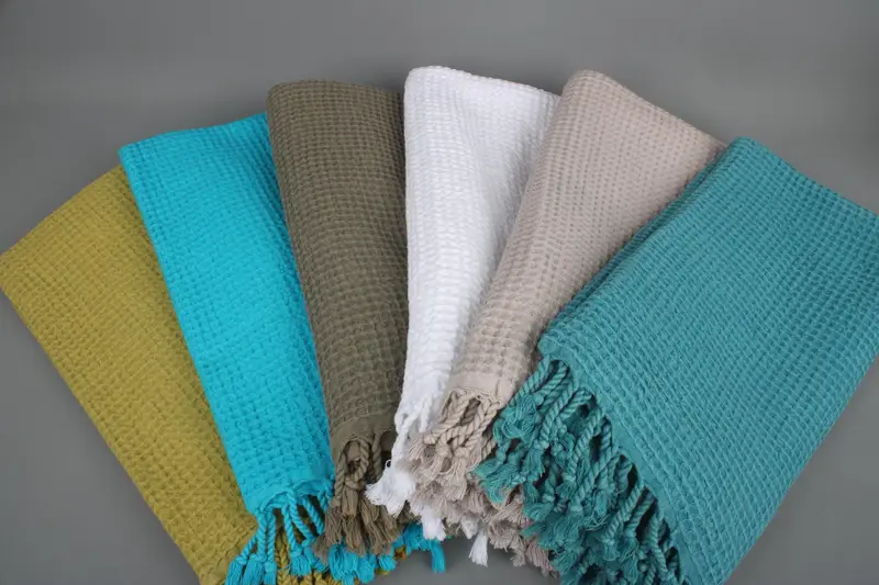 Beach Towel Monogram Waffle Turkish Cotton Beige, 36x67 Inches