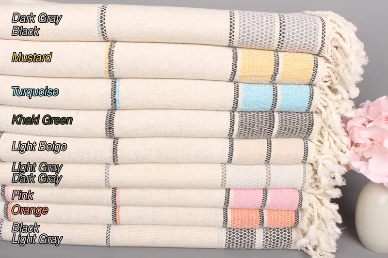 Striped Organic Cotton Turkish Beach Towel Beige, 36x71 Inches