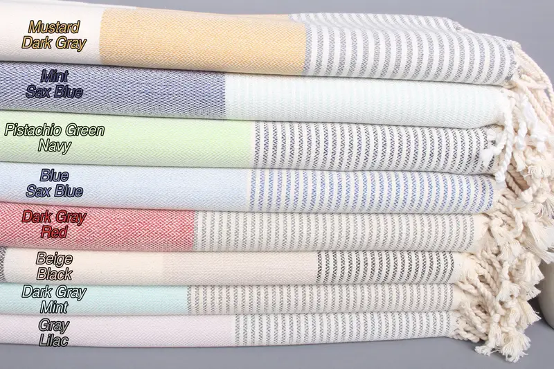 Striped Turkish Beach Towel Organic Cotton Beige, 40x71 Inches