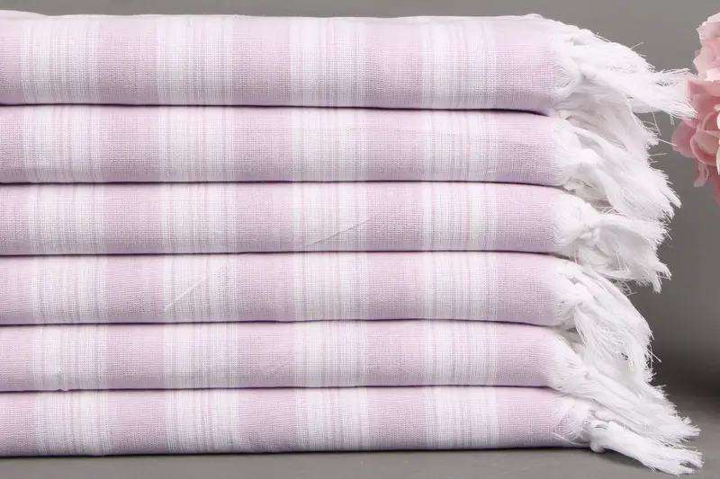 Organic Cotton Towel Personalized Light Lilac Striped Beach Towel, 40x71 Inches