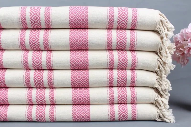 Personalized Fuchsia Diamond Turkish Towel, Organic Cotton, 36x71 Inches
