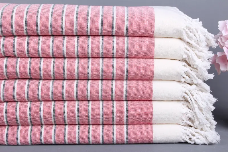 Organic Cotton Turkish Beach Towel Red Striped, 39x65 Inches