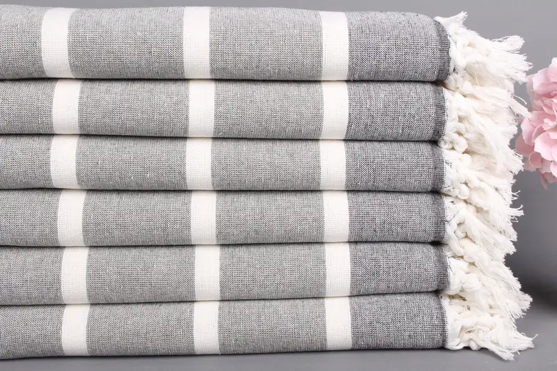 Personalized Towel Turkish Organic Cotton Khaki Green Stripes, 40x67 Inches