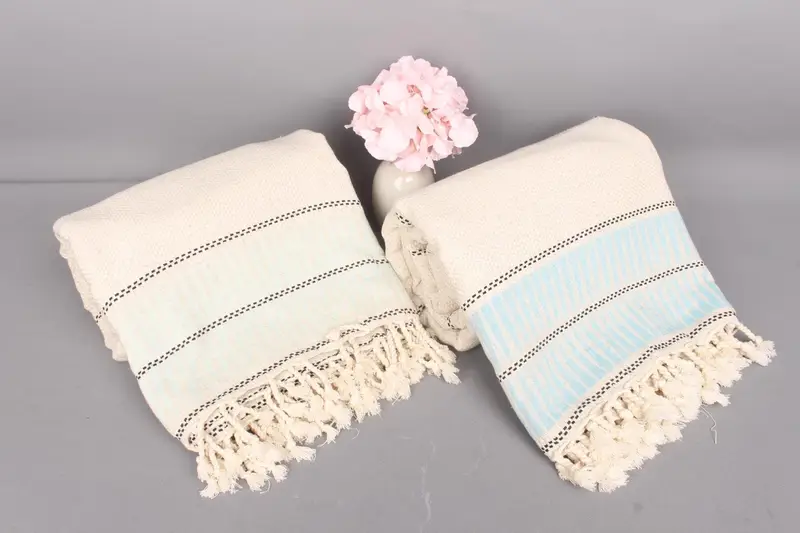 95x103 Cotton Throw Beige Chevron Pattern, King Size, Organic Cotton