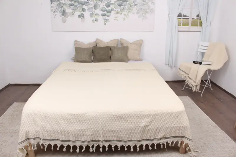 Custom Handwoven Khaki Green Striped Throw, 91x93 Inches
