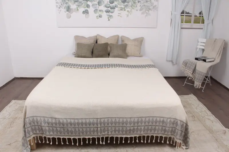 Sofa Blanket Navy Kilim Design Throw, 87x99 Inches, Organic Cotton