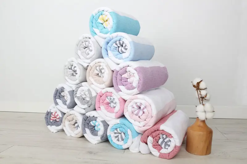 Beach Towel Monogrammed Turkish Cotton Beige Stripes, 36x67 Inches