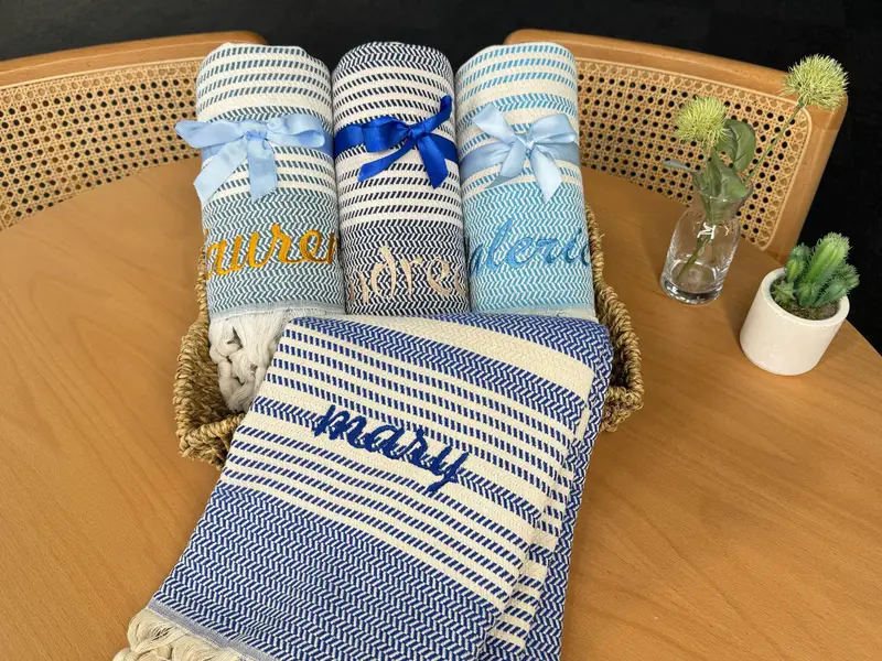 Personalized Turkish Beach Towel Monogrammed, Beige, 100x180 cm