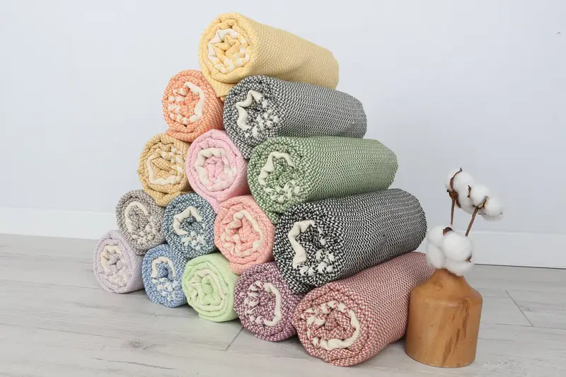 Custom Handmade Beach Towel Turkish Cotton Striped Beige, 40x70 Inches