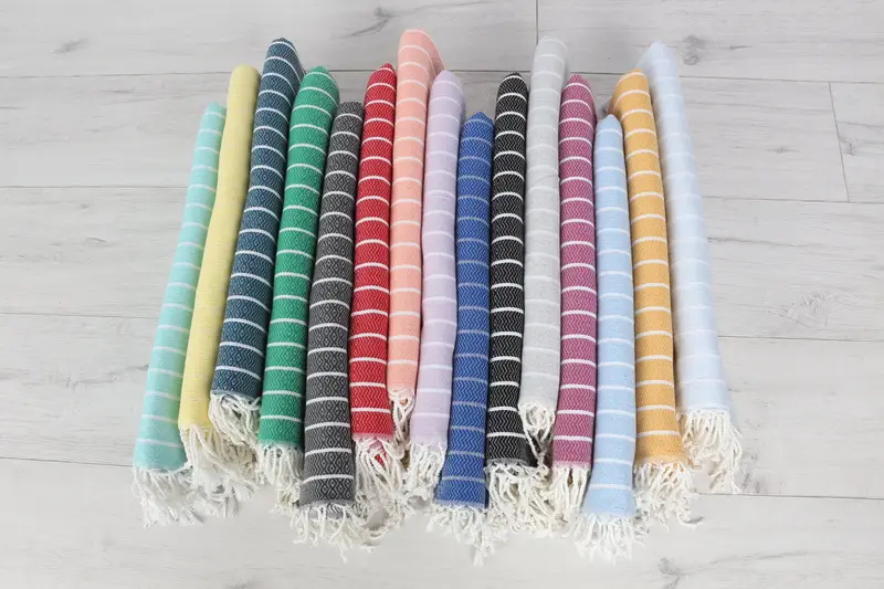 Personalized Beach Towel Striped Beige, Turkish Cotton, 40x71 Inches