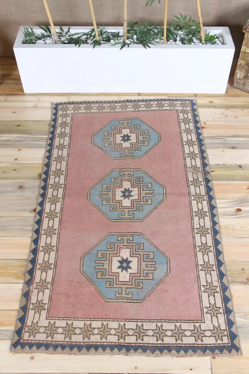 Vintage Rug, 3.5x6.2 ft Accent Rug, Blue Geometric Wool Turkish Rug