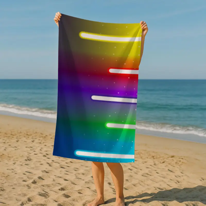 Rainbow Glow Beach Towel Black Neon Stripes, Polyester Cotton, 28x53 Inches