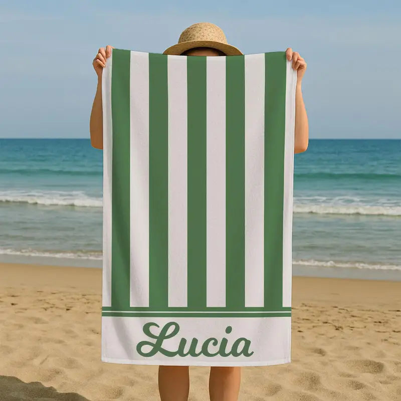 Custom Cabana Stripe Beach Towel, White Vertical Stripes, 28x53 Inches