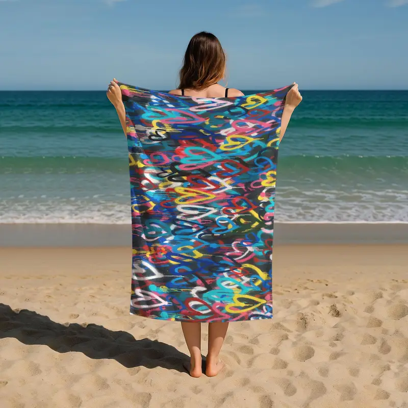Banksy Love Hearts Pattern Printed Towel Blue, Organic Cotton, 28x53 Inches