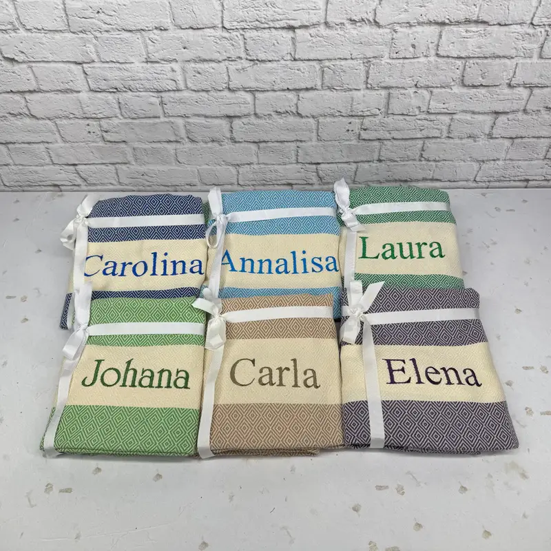 Embroidered Turkish Towel Beach, Organic Cotton, 100x180 cm