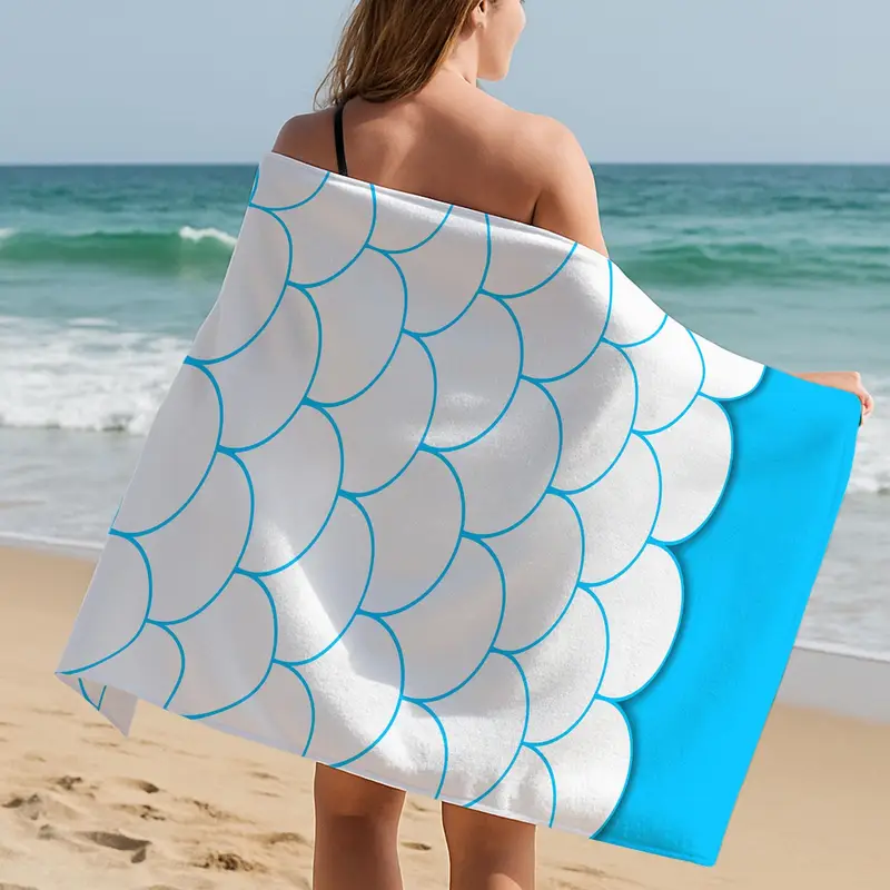 Custom Mermaid Scale Beach Towel Fish Scale Pattern, 28x53 Inches