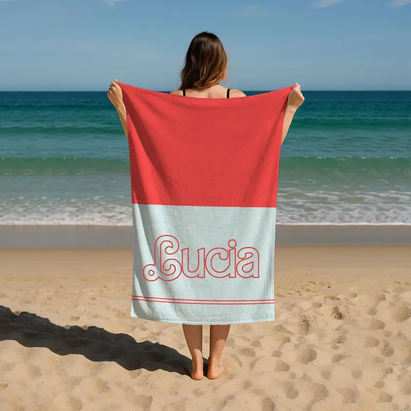 Personalized Color Block Beach Towel Organic Cotton, White, 28x53 Inches