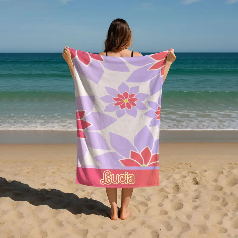 Personalized Floral Beach Towel with Name, 28x53 Inches