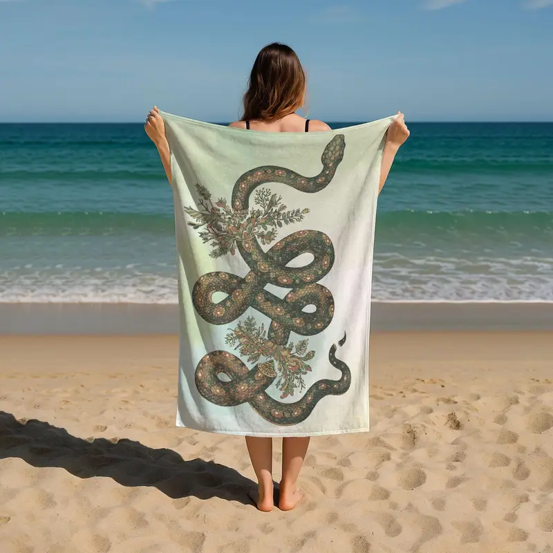 Personalized Snake Art Beach Towel Floral Serpent Design, 28x53 Inches