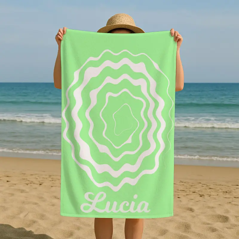 Personalized Wavy Circle Beach Towel Custom Name Pastel, 28x53 Inches