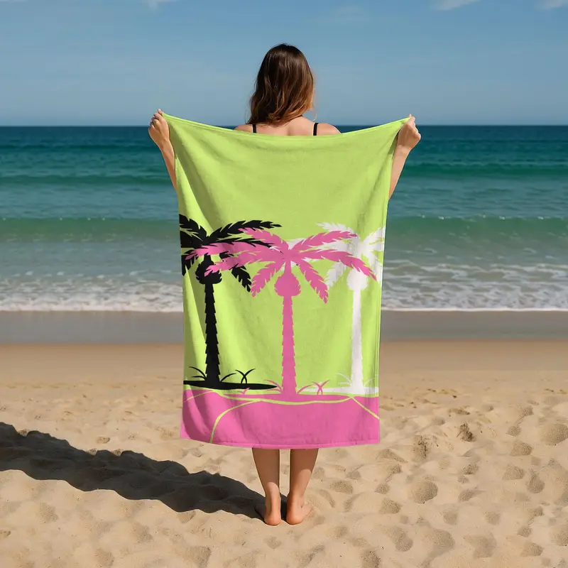 Beach Towel Custom Name with Palm Trees, Polyester Front, 28x53 Inches