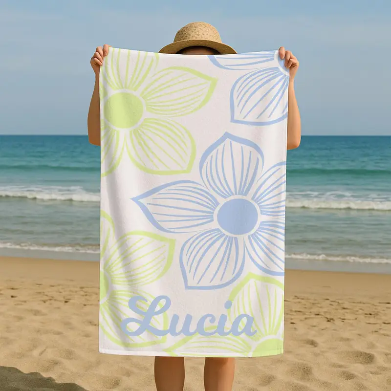 Personalized Beach Towel Floral Print Kids & Adults, 28x53 Inches