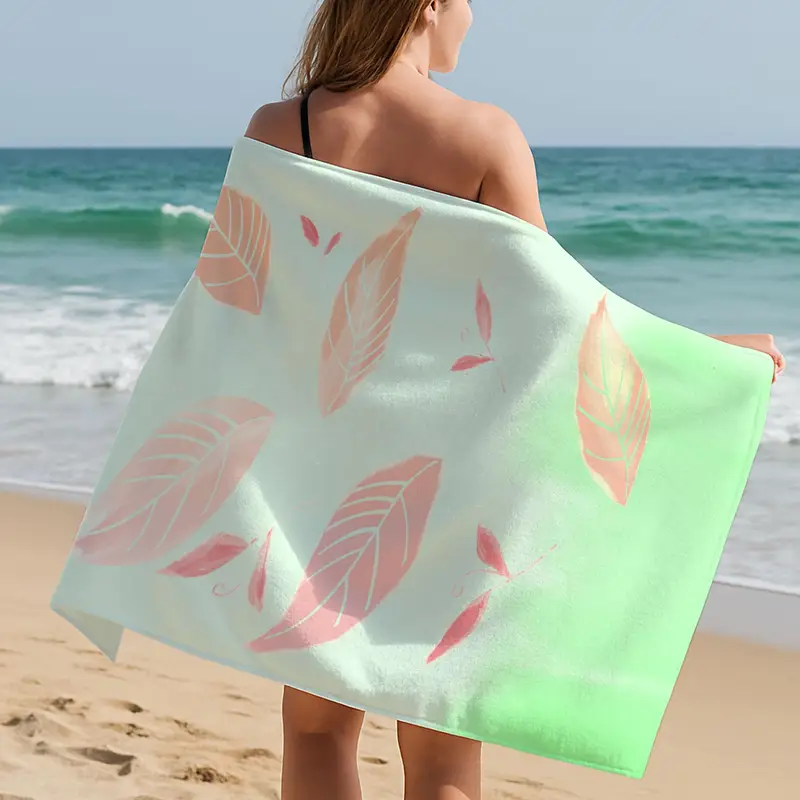 Personalized Leaf Print Beach Towel Custom Name, 3 Sizes, 70x135 cm