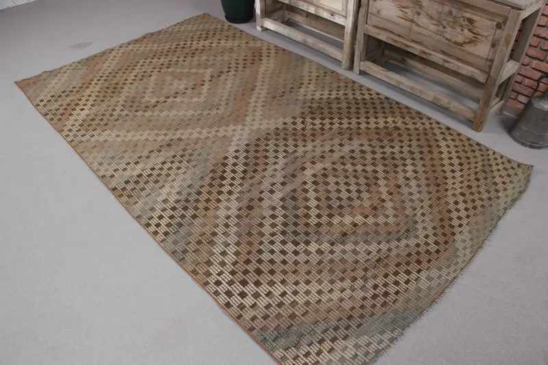 Turkish Vintage Rug, 4.5x8.1 ft Area Rug, Brown Kilim Abstract Rug