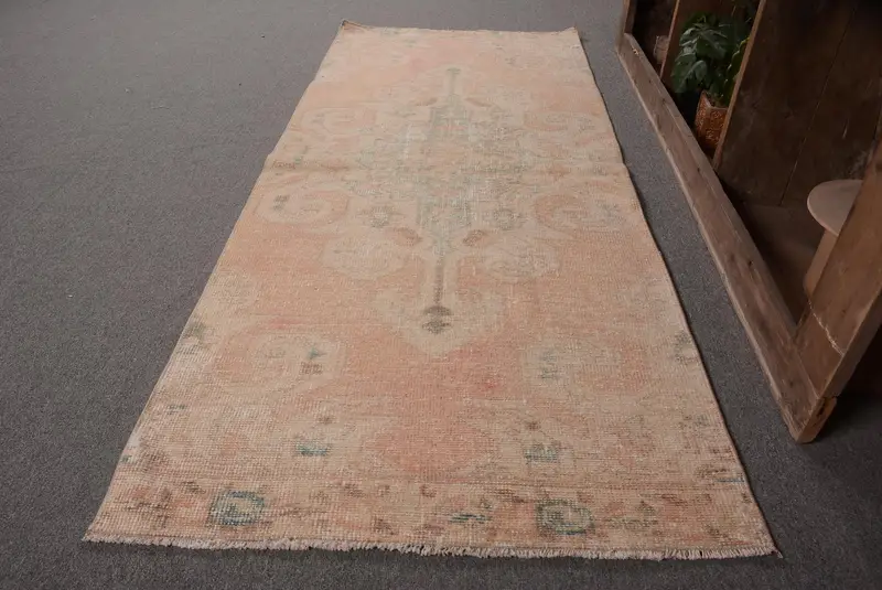 2.8x6.9 ft Rug, Turkish Vintage Rug, Brown Blue Polka dot Wool Rug