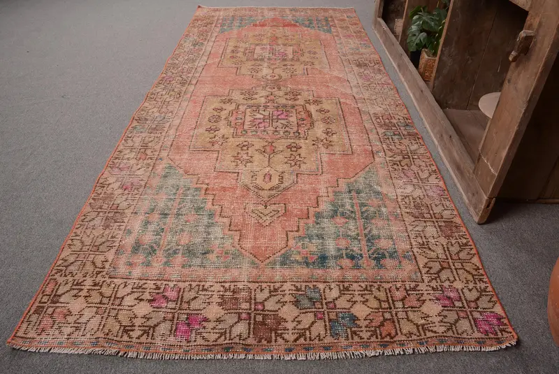Turkish Vintage Rug 3.6x8.5 ft, Red Moroccan Rug