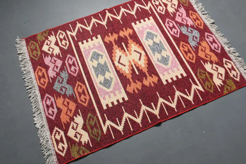 Turkish 2.9x4.1 ft Rug, Vintage Small Rug, Red Check Rug