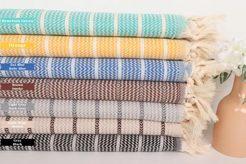 Beach Towel Striped Turkish Cotton Beige, Organic, 40x71 Inches