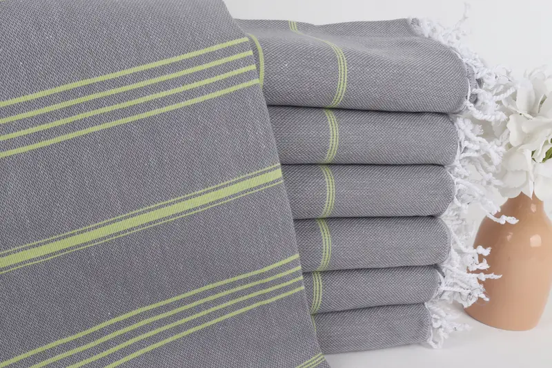 Christmas Gift Towel Monogrammed Turkish Bath, Gray-Green Striped, 40x71 Inches