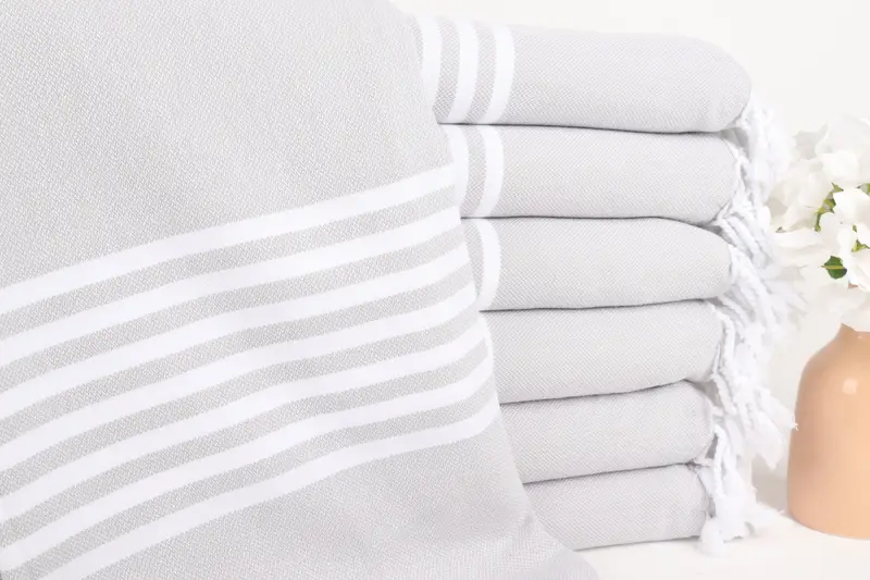 Personalized Turkish Beach Towel Light Gray Stripes, 40x67 Inches