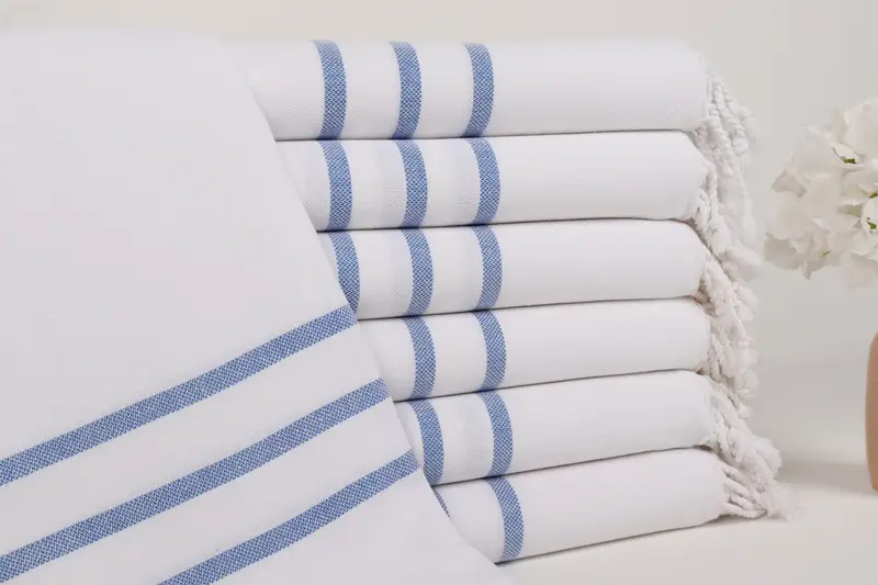 Beach Towel Personalized Turkish Cotton Sax Blue Stripes, 40x71 Inches