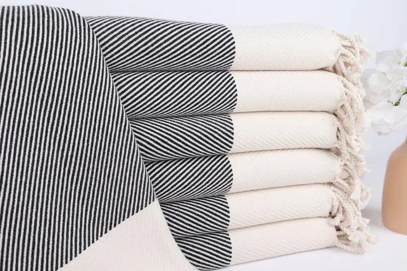 Bridal Shower Gift Turkish Cotton Beach Towel Black Beige, 40x71 Inches