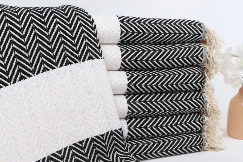 Custom Beach Towel Embroidered Black-White Chevron, Beige, 40x71 Inches