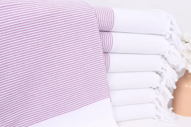 Striped Towel Monogrammed Turkish Cotton Purple Beige, 40x71 Inches