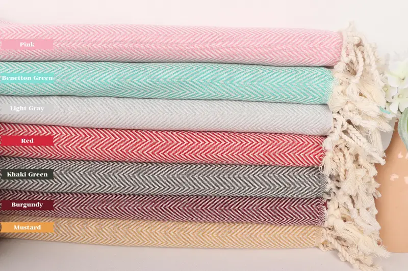 Beach Towel Organic Cotton Beige Herringbone, 40x71 Inches