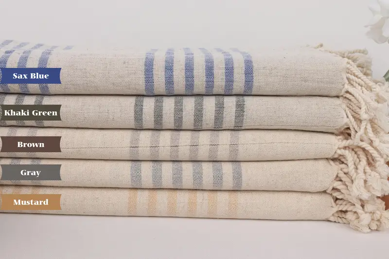 Quick-dry Organic Turkish Cotton Beach Towel Beige Stripes, 40x71 Inches