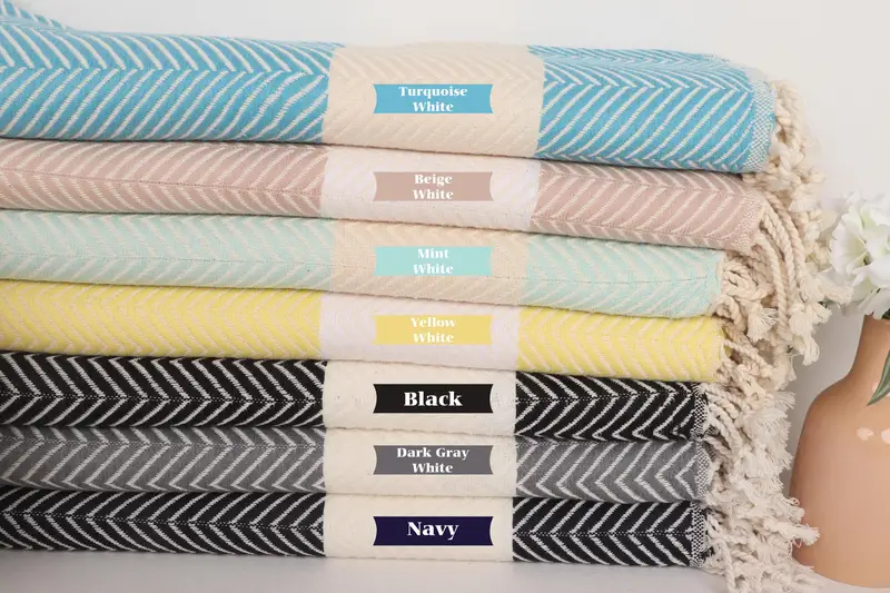 Zig Zag Towel Organic Cotton Turkish Beach Towel, Beige, 40x71 Inches